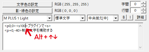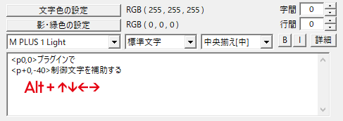 また、<p0,0>内のどこかにキャレットがあればAlt+上下左右の方向キーで座標を調節することができます。