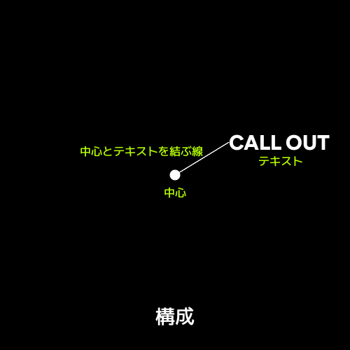 コールアウトは主に中心となるオブジェクト、テキスト、それらを結ぶ線の3つで構成されています。