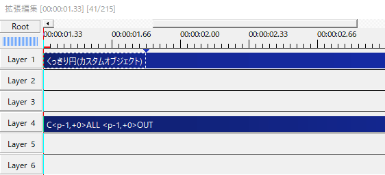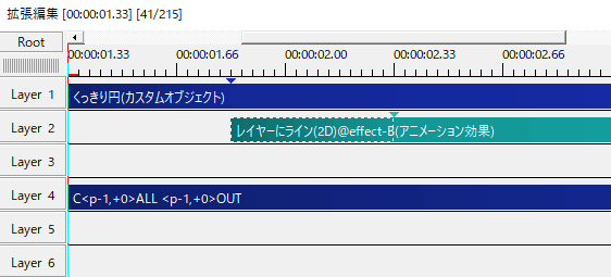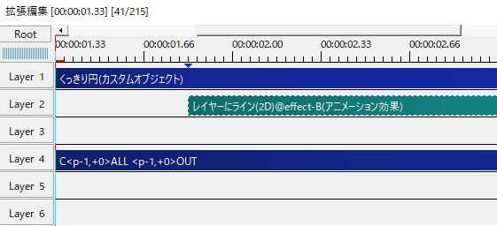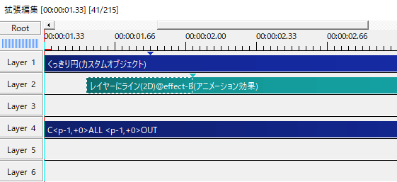 くっきり円が大きくなる動きとレイヤーにライン(2D)の線を引く動きのタイミングを調整します。