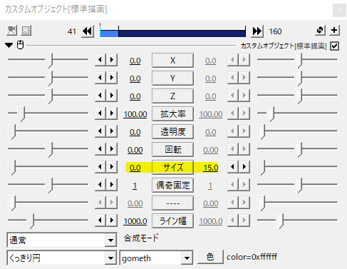 もしサイズを移動させて挙動がおかしくなる場合は、0.0を0.1にしてみてください。