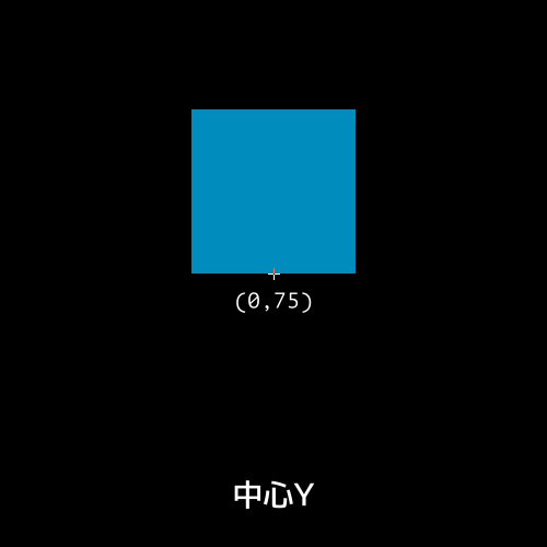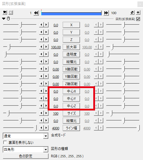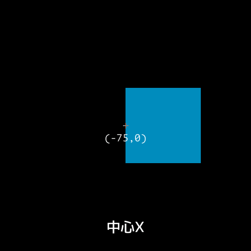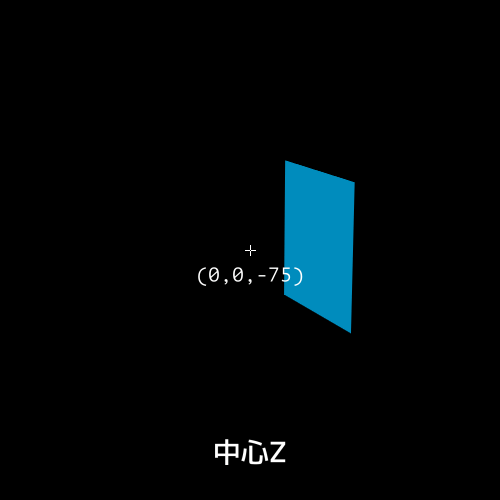 中心Zをー75としてみると、こんな感じで四角形が奥にずれます。中心Zは主にカメラ制御と一緒に使われることが多いかと思います。