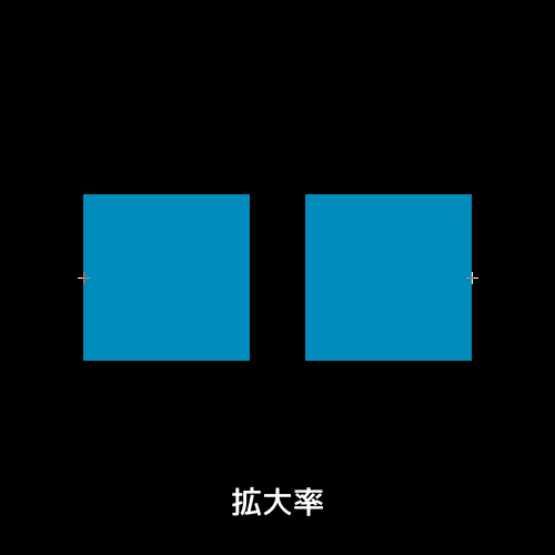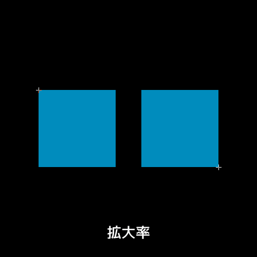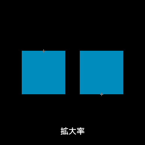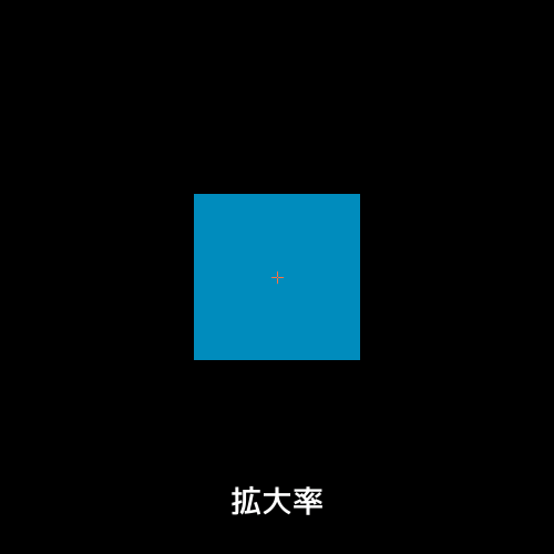 拡大率も回転と同様、同じことをしても中心座標が異なることでそれぞれ違った動きを作ることができます。