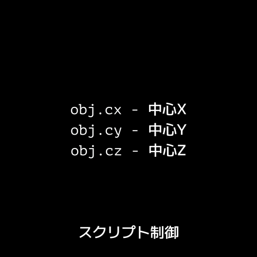 obj.cx、obj.cy、obj.czがそれぞれ中心XYZになります。
