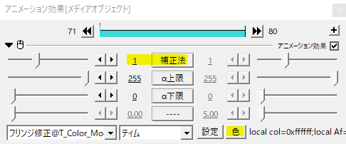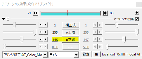補正法0では主にα下限で縁の調節を行います。α下限の調整は他の補正法にも反映されます。