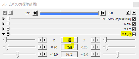 基本的にぼかし、単色化、凸エッジは背景とのコントラストを高めるためにかけているので、他のエフェクトで代用することができます。他のエフェクトを新たに追加してみるなどいろいろ試してみてください。