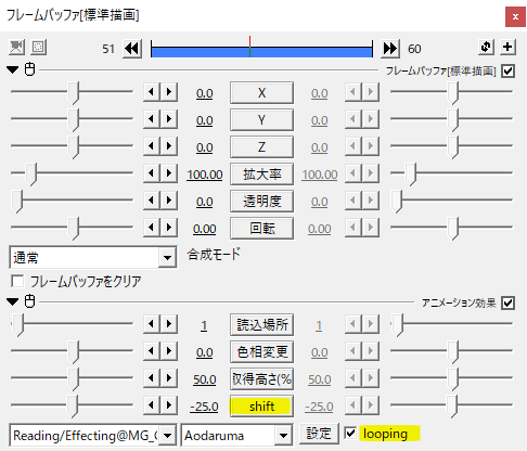 loopingにチェックを入れます。shiftで色の位置をずらして調節することができます。