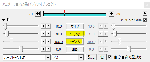 AviUtlではハーフトーンを作る方法がいくつかあります。ここではアスさんのハーフトーンT改をメインに紹介したいと思います。