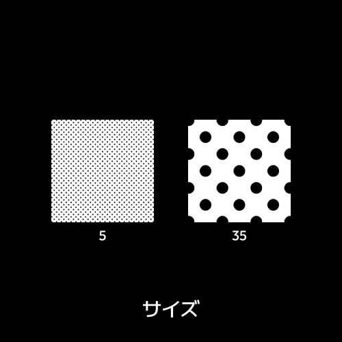 サイズは点と点の間隔で、小さくするほど点が密集しその分負荷が高くなります。