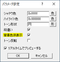 背景色非表示にチェックを入れるとハイライト色で指定した背景部分が透過されます。