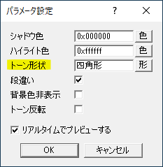 パラメータ設定ではシャドウ色とハイライト色で色指定をすることができます。点の色はシャドウ色になります。
