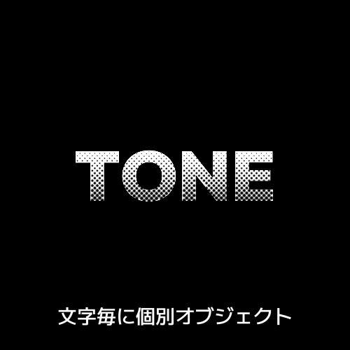 アスさんのハーフトーンT改の改良点がこちら、文字毎に個別オブジェクトにチェックを入れてもテキストが中央に集まらずにハーフトーンT改を適用できます。