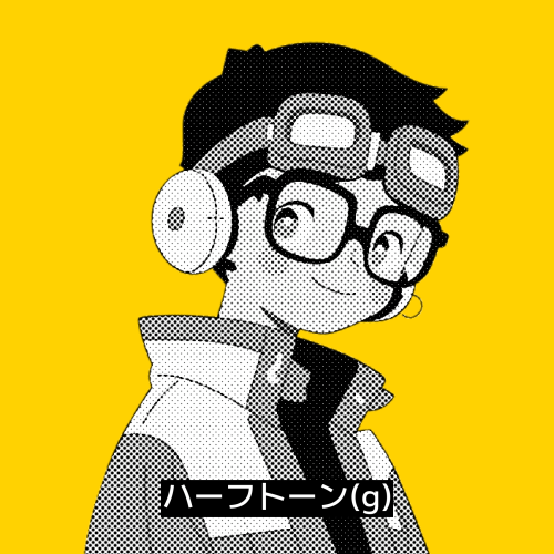 いろいろできるハーフトーンT改、点が細かく軽いハーフトーン(g)、シーンチェンジにぴったり簡易水玉_mとシーンに合わせて使い分けると作業が捗るかと思います。