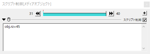 スクリプト制御の欄にobj.rz=45と記述しました。