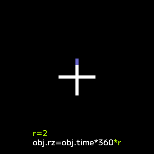 obj.rz=obj.time/obj.totaltime*360*r --オブジェクトの長さでr回転