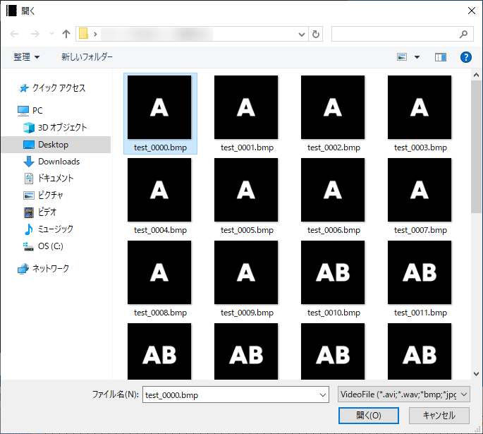 参照ファイルから連番画像の一番最初に読み込みたい画像を指定し、開くボタンをクリックします。