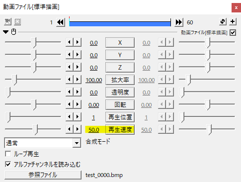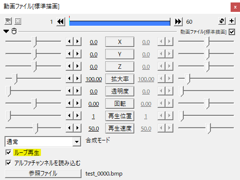 ループ再生にチェックを入れると読み込んだ連番ファイルをループします。