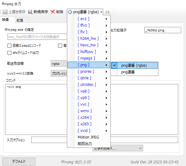 ffmpegOutを使ったpng(rgba)で連番出力