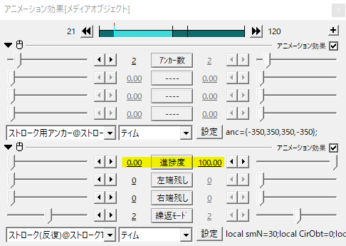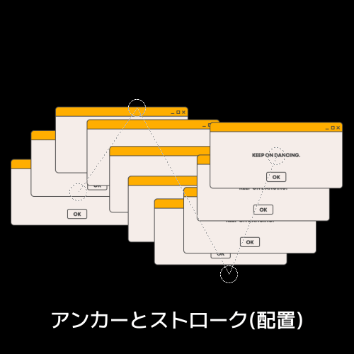 アンカーはストローク(反復)のところと同じです。ストローク(配置)では進捗度を移動させてオブジェクトを描画します。