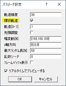 パラメータ設定の環状軌道にチェックを入れると、最初と最後のアンカーを繋ぐように環状になります。