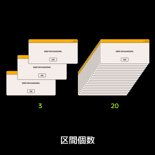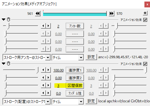 区間個数ではアンカー間に描画するオブジェクトの個数を調節します。