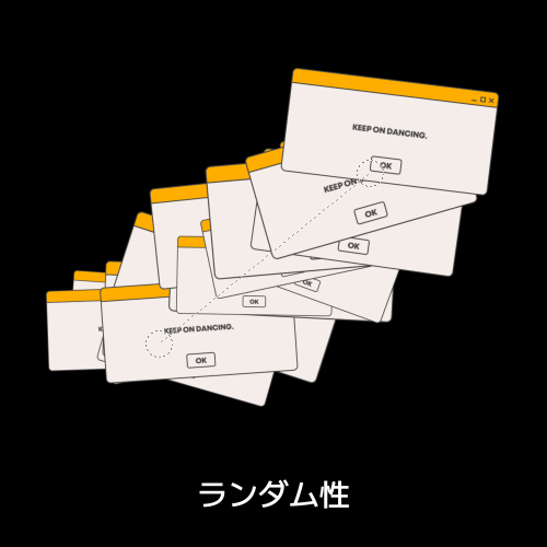 ランダム性を大きくすることで角度等にランダム性を加えます。