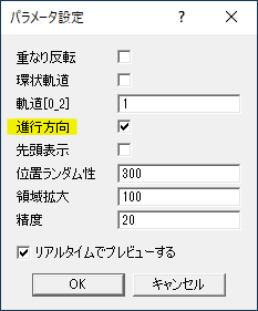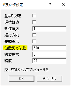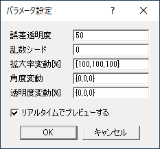 パラメータ設定の位置ランダム性の項目でオブジェクトの位置にランダムでばらつきを加えます。