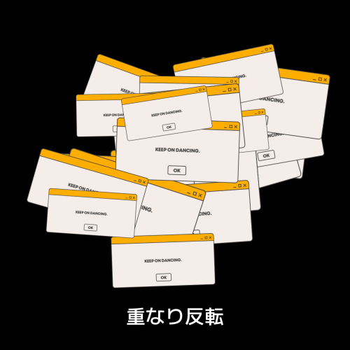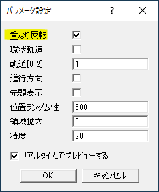 重なり反転にチェックを入れると重なりの前後が反転します。
