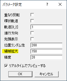 そんなときは領域拡大の欄で領域を広げると見切れが解消されます。