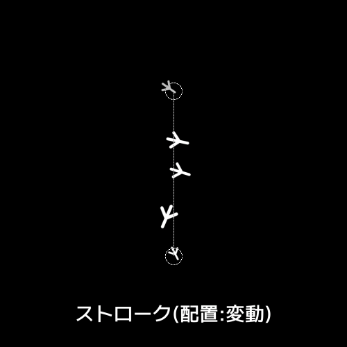 ストローク(配置:変動)はストローク(配置)に追加でかけて使います。XY座標、サイズ、角度、透明度等を個別に調整することができます。
