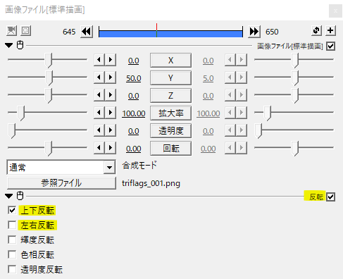 素材にストロークスクリプトをかけたら逆さになってしまった、左右逆にしたいといったときには素材に反転をかけます。