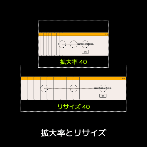 編集の途中でオブジェクトの大きさを変える場合、拡大率とリサイズで挙動がちょっと変わります。