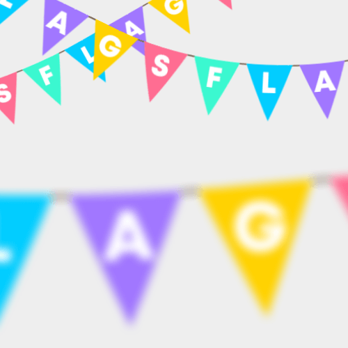 三角旗素材。アンカー3でたわんだような曲線状に。直線状の元オブジェクトがうまく曲線状に変形できています。