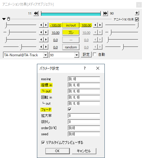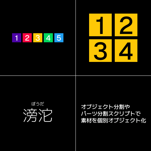 など素材を個別オブジェクト化できればテキストと同じようにTA-Normalで登場、退場を工夫することができます。