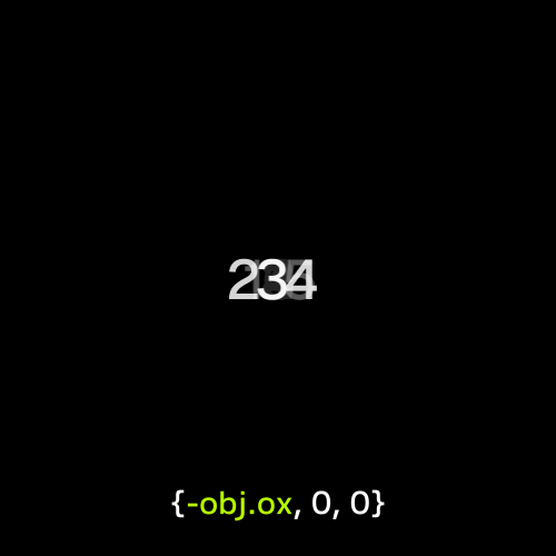 {-obj.ox, 0, 0}と値をマイナスにすると動きが反転します。