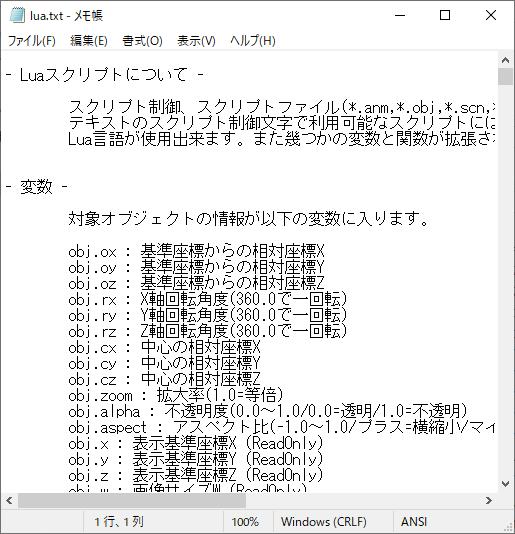 変数や関数の一覧はlua.txtに書いてあるので一読してみてください。