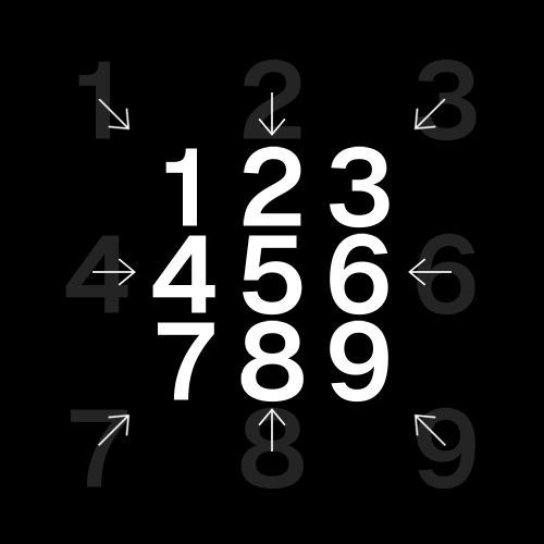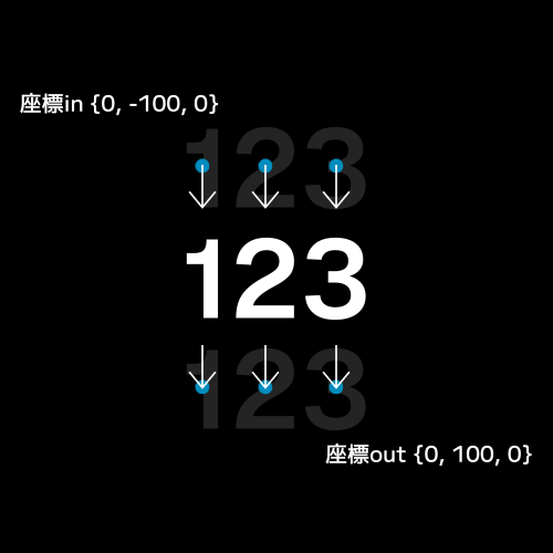 値をマイナスにして反転。中央から外側へ移動する動きになります。