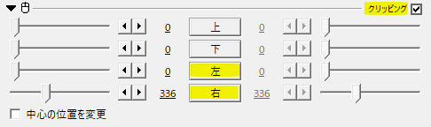 クリッピングをかけて左右を切り取ります。クリッピングで余計な領域を切り取ることで一文字に加工するという感じです。