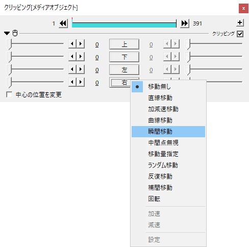 中間点を打ち、移動方法に瞬間移動を選択します。