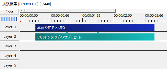 瞬間移動は中間点の位置で切り替わるので、中間点毎に切り取る領域を設定することで単語や節で分割して表示させることができます。