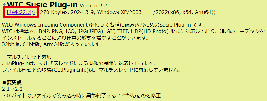 TORO’s LibraryさんのページからWebP用Susie Plug-inを入手します。iftwic22.zipをダウンロードし、解凍します。