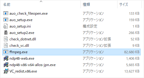 解凍後、binフォルダにあるffmpeg.exeをコピーし、exe_filesフォルダのffmpeg.exeと入れ替えます。