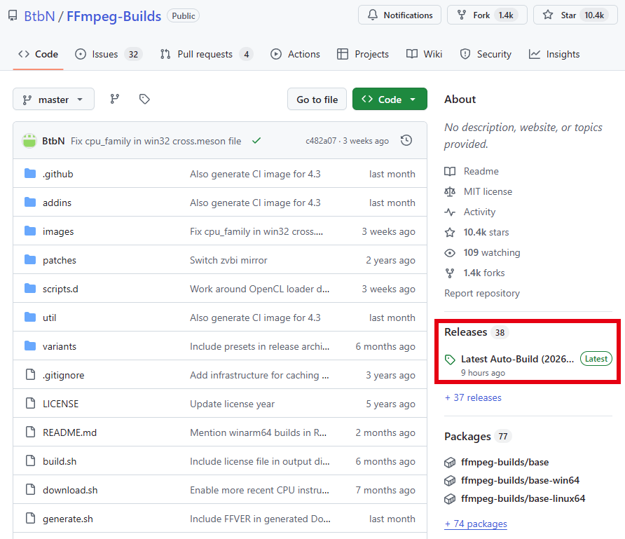 FFmpeg Static Auto-Builds(GitHub)からReleasesページへ。